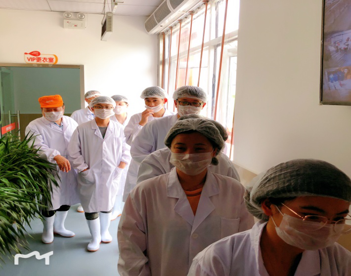 制餐中心有一套特有的參觀檢查通道,主要目的是方便政府食品安全檢查部門,公司合作客戶等進入制餐中心檢查與參觀,其次是與制餐現(xiàn)場進行隔離,防止衛(wèi)生污染。進入中心,需穿戴一次性帽子,白馬褂,白膠鞋,口罩,手套等,其中,白馬褂,白膠鞋使用后會進行清洗消毒處理。